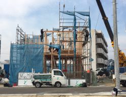 先日、S様邸の上棟を行わせて頂きました。天候も良く、秋晴れの中で作業することが出来ました。上棟の日には、基礎だけの状態から、柱・梁が組まれていき、一気に屋根の下地まで組み上げていきます。