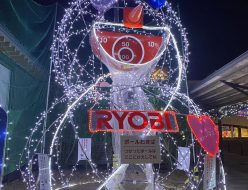 こんにちは!総務課の三宅です。道の駅びんご府中に、イルミネーションがあったので娘と2人で立ち寄ってみました。府中市の企業の名前が入ったイルミネーションが展示されていました。