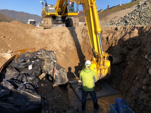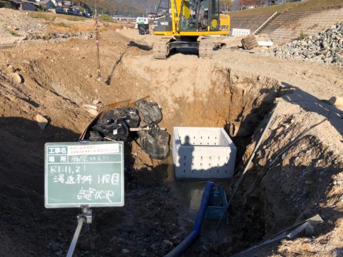 もとからあった農業用水用のヒューム管につなげる工事です。