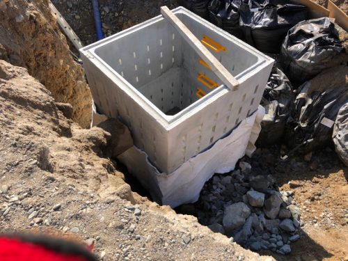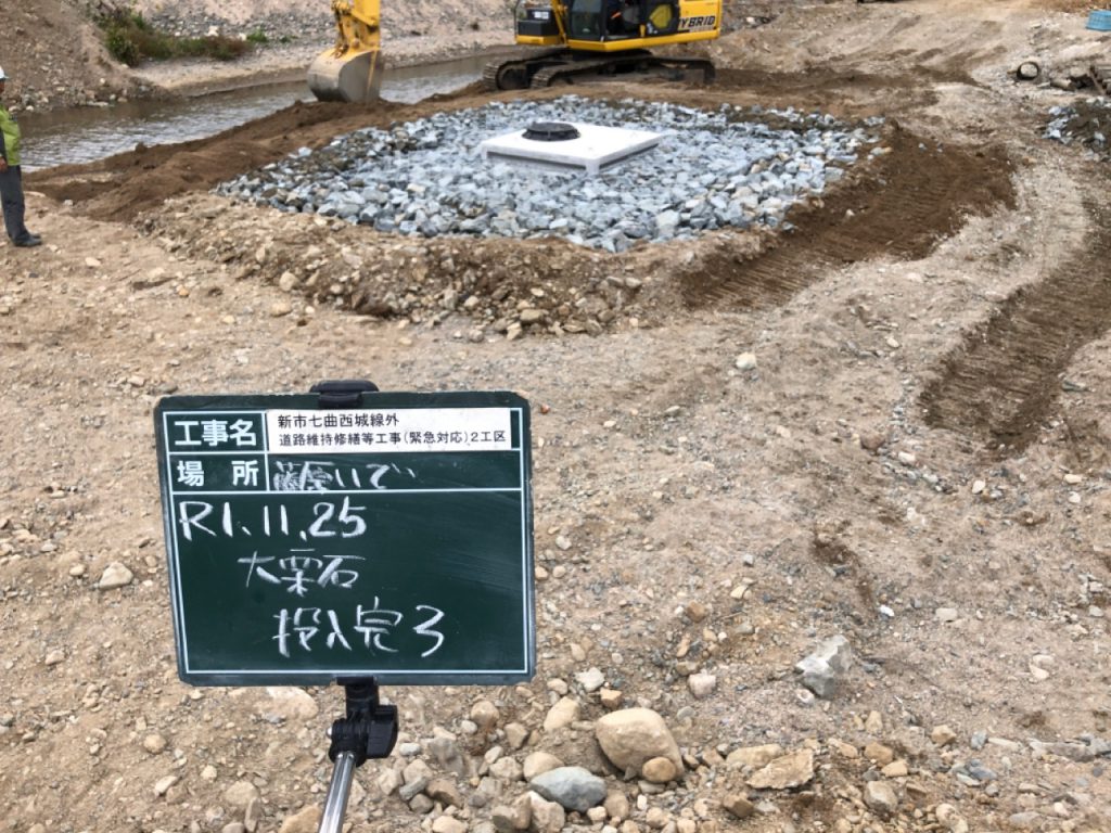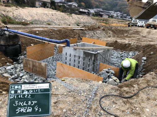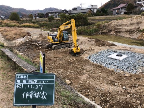 ちょっと変わった工事で川の中に集水マスを設置しました。