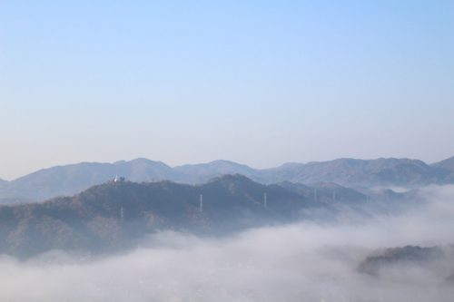 さて、先日、この辺りでは珍しく朝もやがかかっていたので、もしや!!と思い近所の山に登ったら 。 。 。