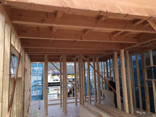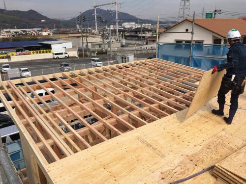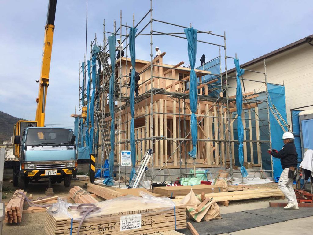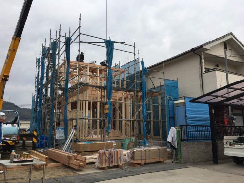 今日はお客様の上棟です。 お天気も良く、暖かい1日となりました。 現場の方も、朝から順調に作業が進んでいます!