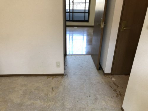 先日、アパートのクッションフロアとクロスの張替現場に行きました。