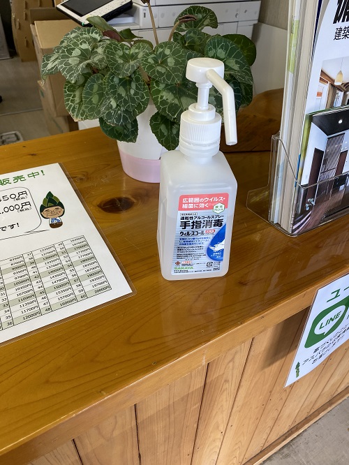 会社でもウイルス対策として、入口のアルコール消毒を行っています。