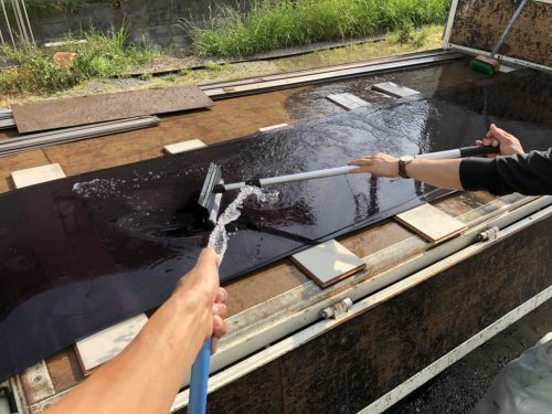 水遊び ではなくカーポートの屋根を洗っているところです笑