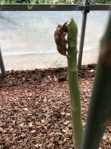 今回は、変わったアスパラ特集です、二股、謝りすぎた、爆裂、パイプを押し上げる、壁の様な、アスパラせみもいました!