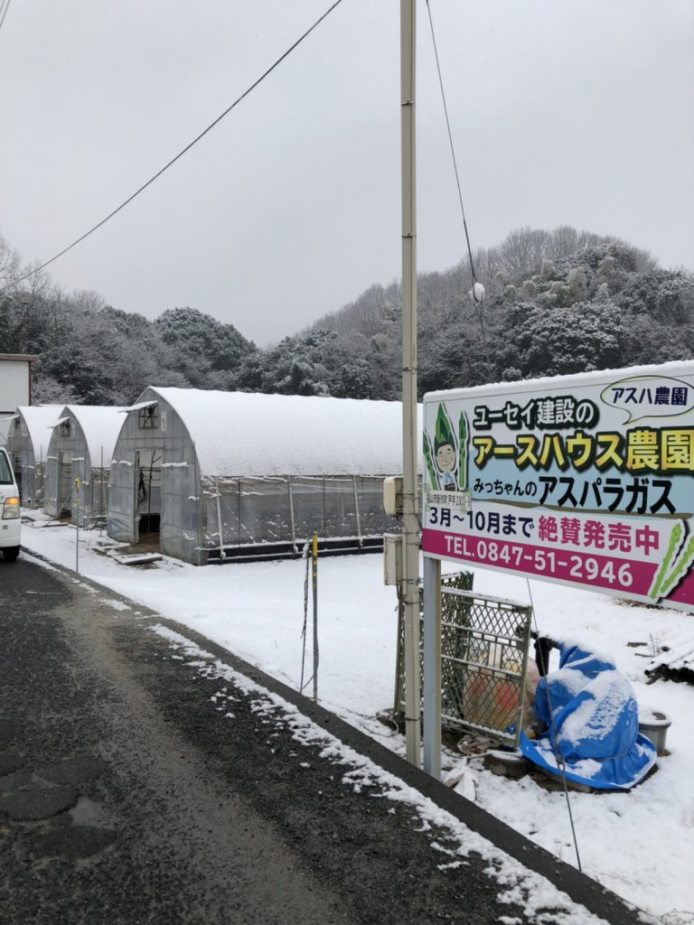 今年は冷え込みもきびしく(ー9°)ハウスも雪景色がみれ、つららもできていました。