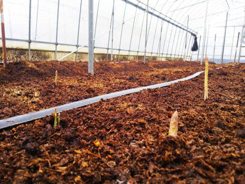 2週間前にスタッフがブログで、雪景色の農園をUPしてくれてましたが、少しずつ暖かくなってきましたので、アスパラも芽が出はじめました!!