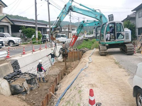 戸手川の災害工事を行っていますが、設計にはない目の細かい砂質土で、手間取っています。