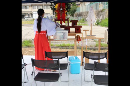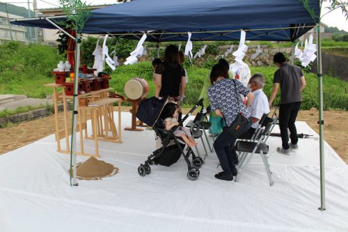 お施主様と弊社スタッフで、土地の神様に工事の安全と施主様ご家族の幸せを参らせていただきました。