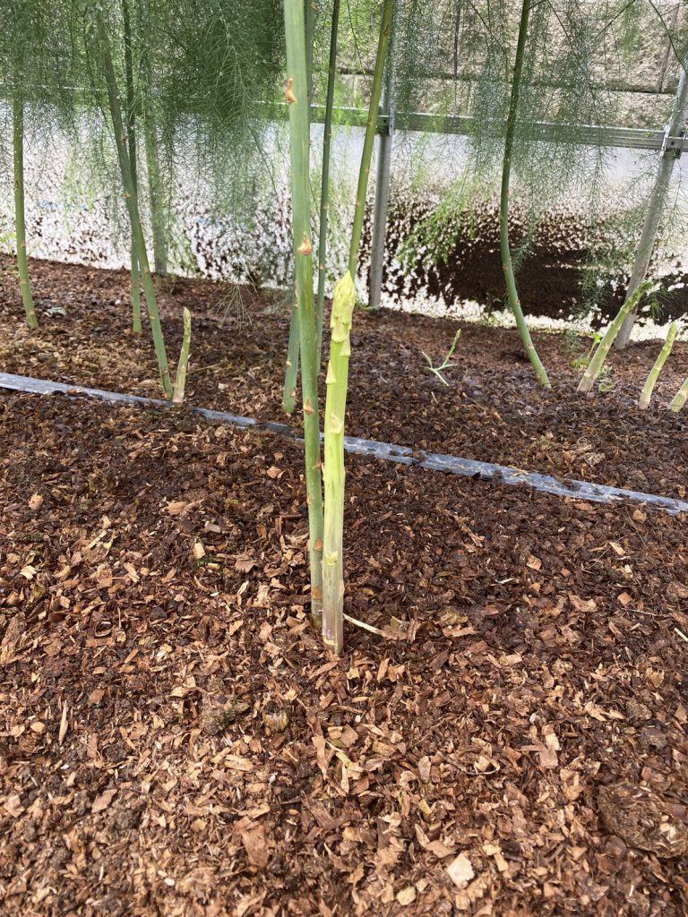 アスパラガスの木が大きくなっていき、その根元の近くにアスパラガスが生えてきます。