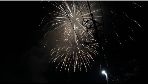 練習の途中で10分ほど外に出てみんなで花火を見ました。