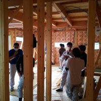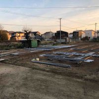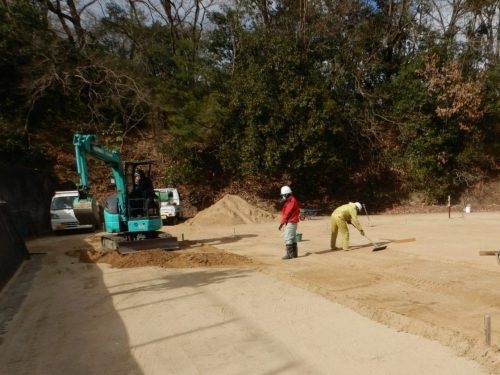 高さを決めて重機での整地。