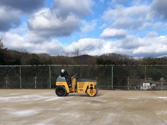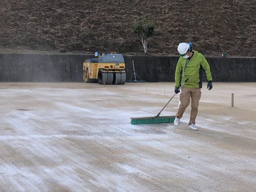 ロードローラーでの転圧。