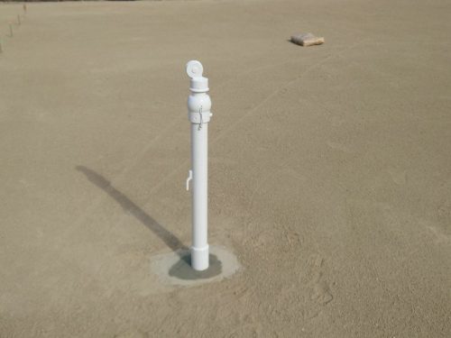 後日、ラインの貼り直しやネットの取付等を行なって完成です。