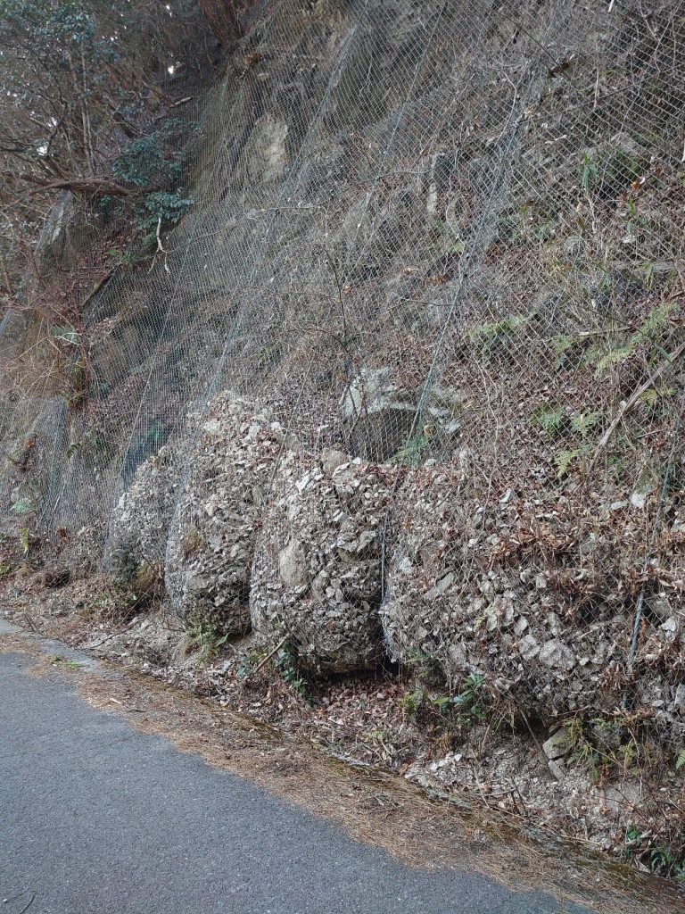 幸いにも民家等が無い場所ではありましたが、この落石防止ネットが施工されていなかったら膨大な事故に繋がったと思います。