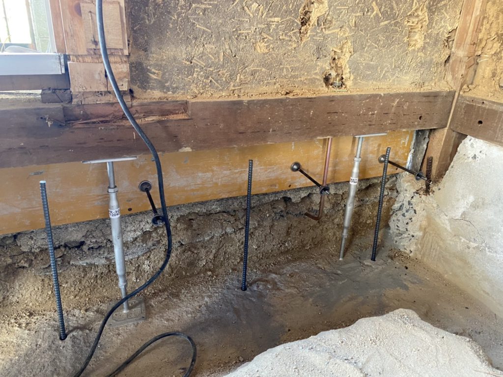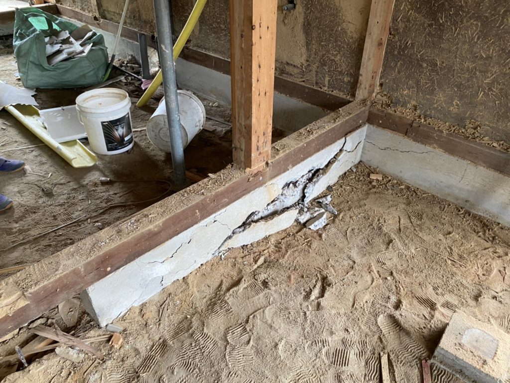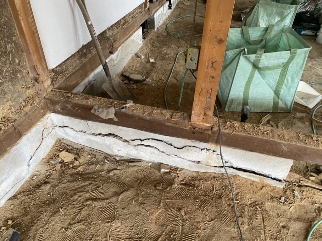 とても状況がひどかったので、古い基礎を解体して新しい基礎にやり替える工事中です。