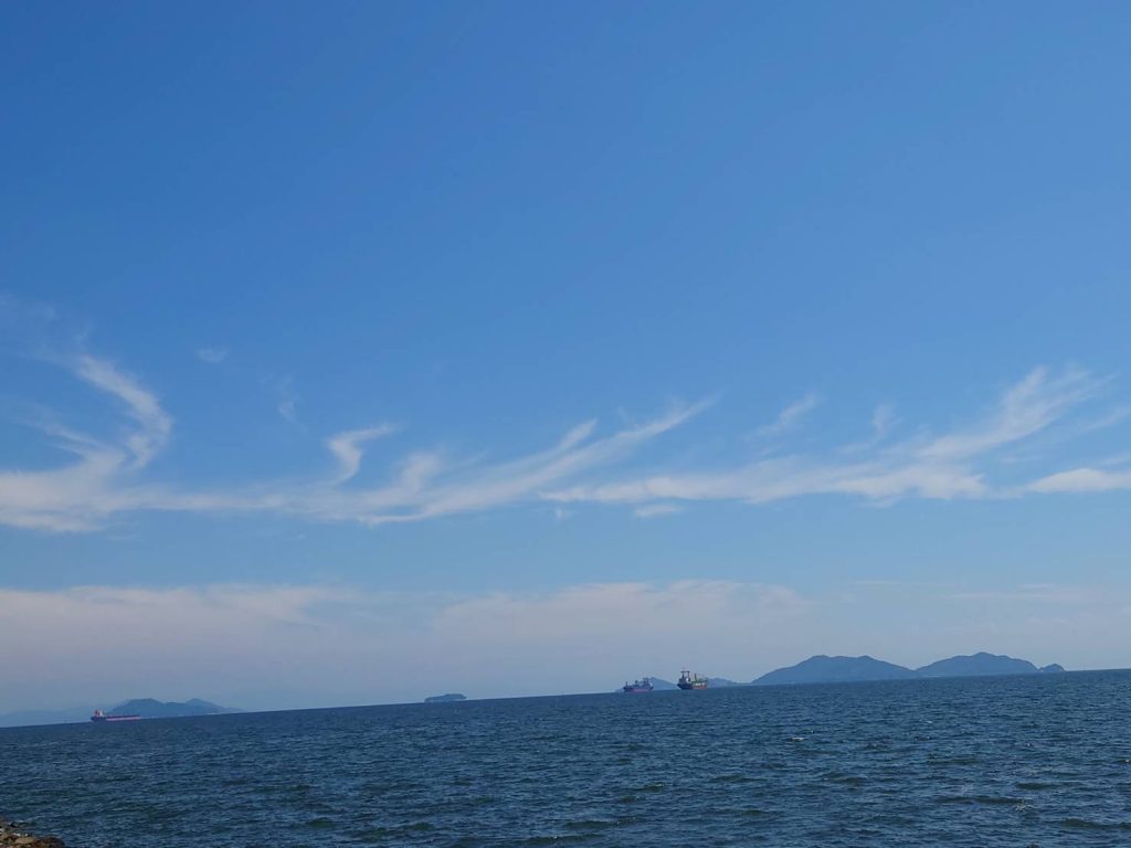 快晴の海空が綺麗だったので思わずカシャしました。大空を鳥が羽ばたいている様に私には見えました。秋ですね🍁
