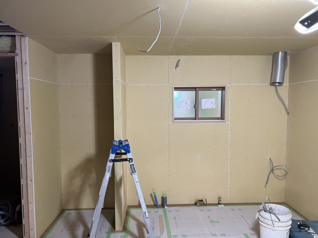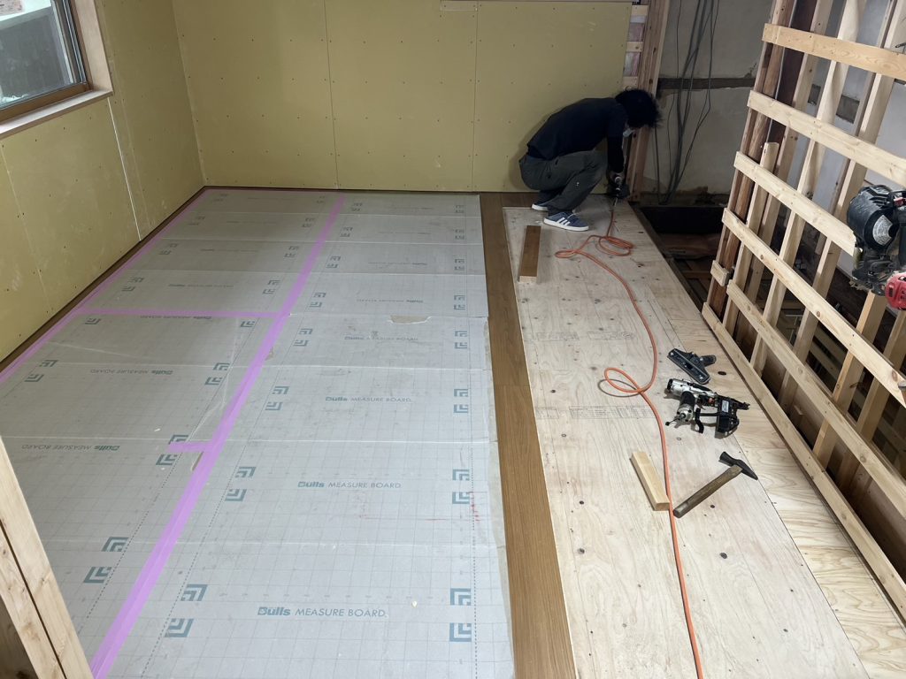 内部は大工さんが造作中。
