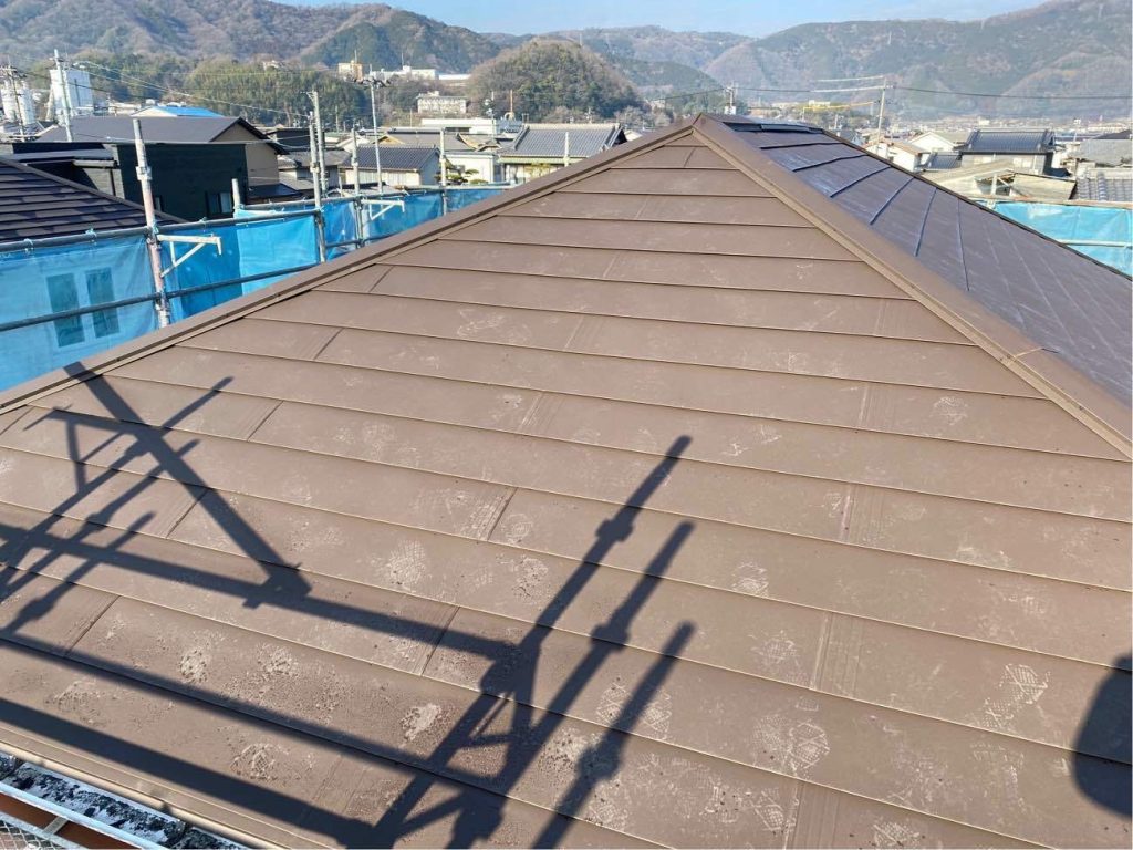 既存の屋根材の上に新しくGL鋼板を葺きました。