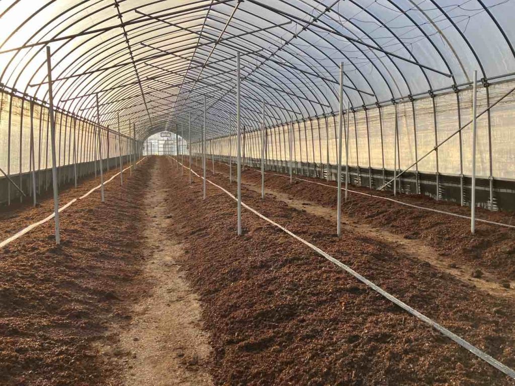 昨年の堆肥を全てビニールハウス外へ出し、畝をバーナーで焼却した後、肥料を撒いた上から再び堆肥を被せ、灌水しながら保温します。