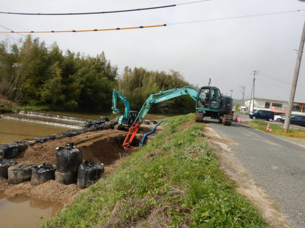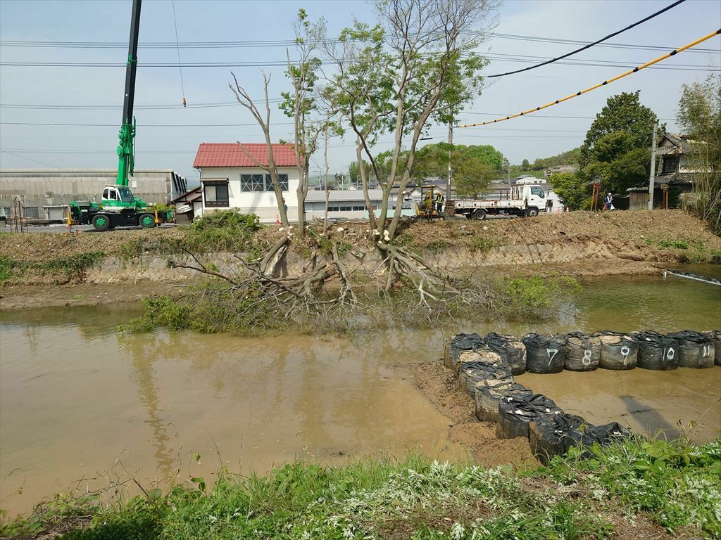 対岸では崩れていた土手にフトンカゴを積む工事も始めました。