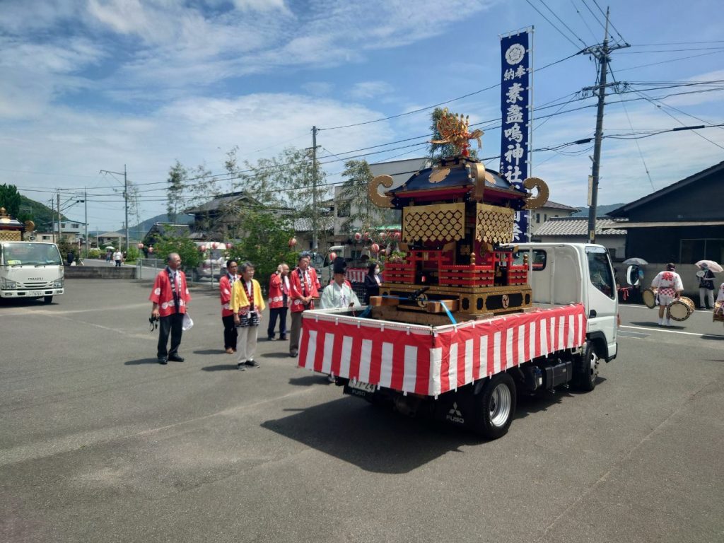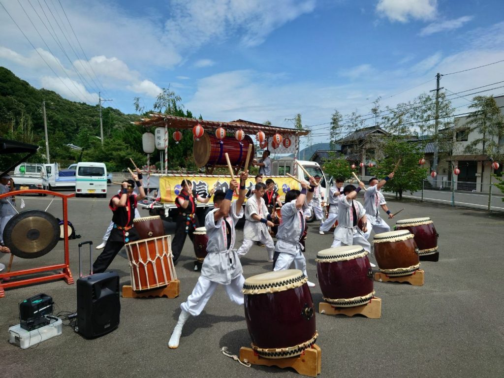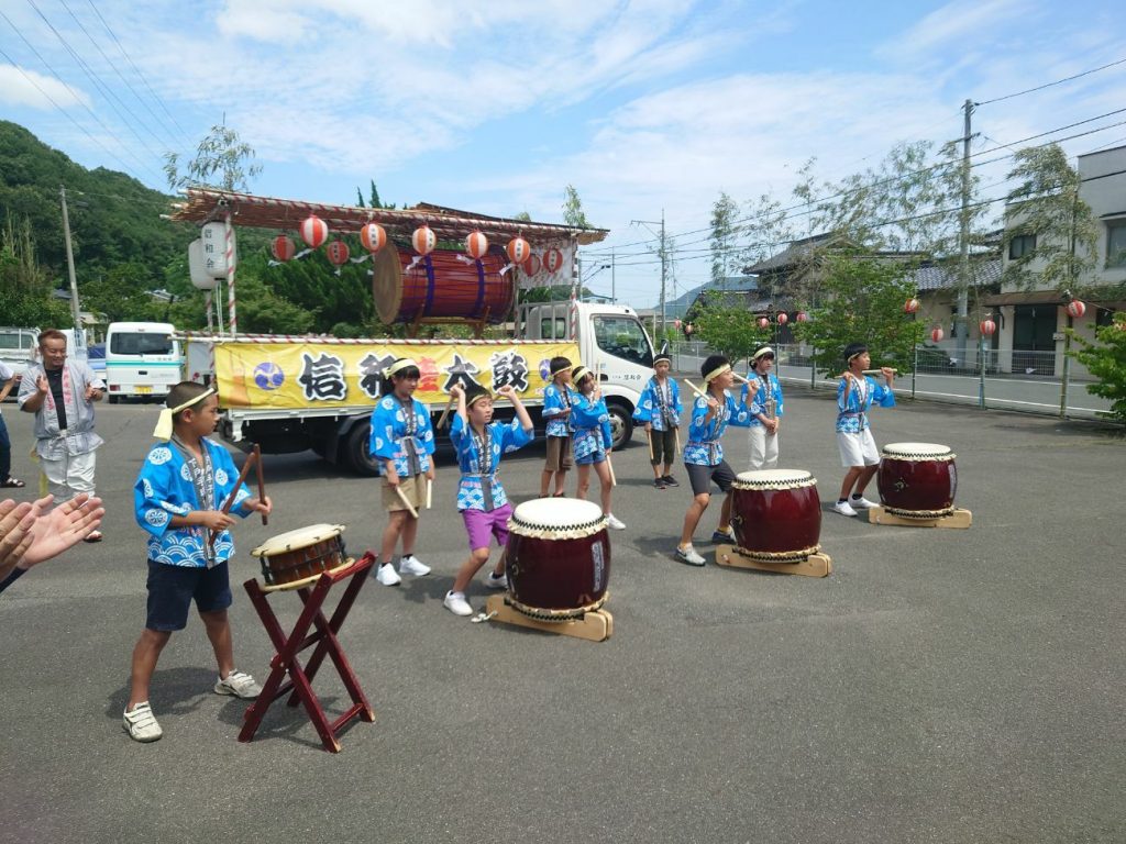 神事が行われ、子どもと大人の太鼓がみんなの気分を盛り上げてくれます。