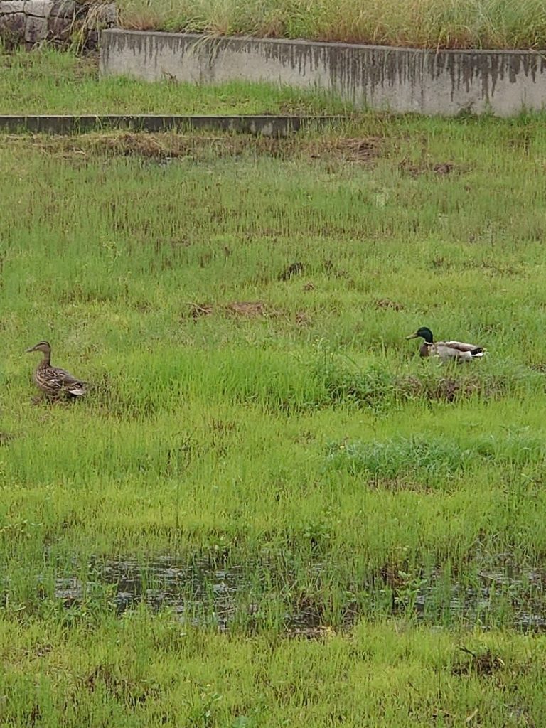 6月6日に前回はイノシシが出没した会社の裏土地に今回は「カモ(鴨)」のつがいです。