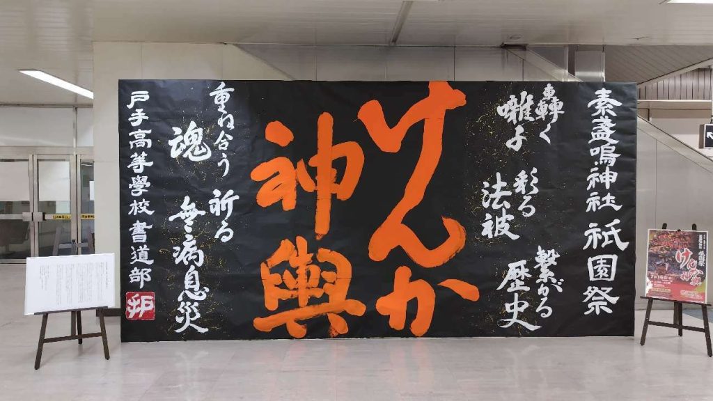 戸手高等学校の書道部のみんさんが、素晴らしい作品で祭りを盛り上げくれました。