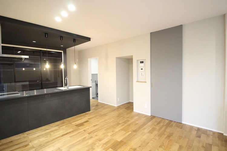2軒目は、収納がたっぷりのリビングと、存在感のあるキッチンが印象的でした。
