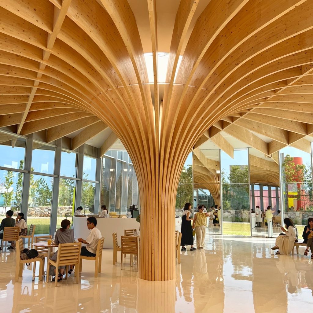 枝が大きく広がるようなアーチ状の柱と梁が印象的なエントランスでした!