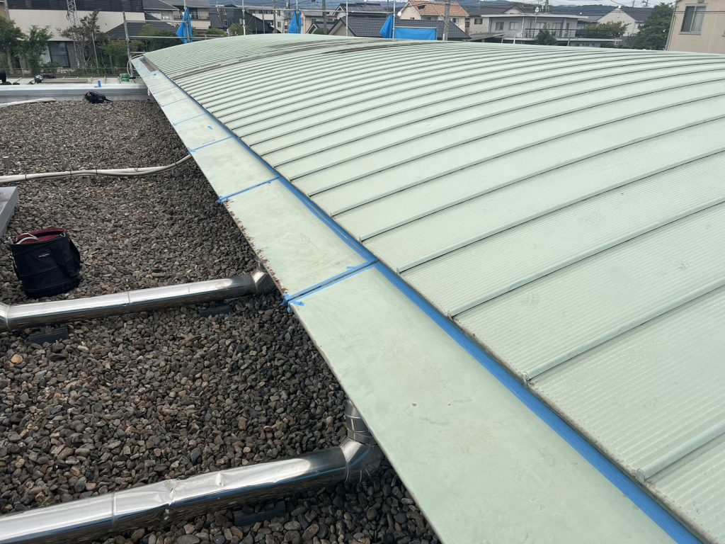 屋根の下塗りとコーキングの撤去中です。