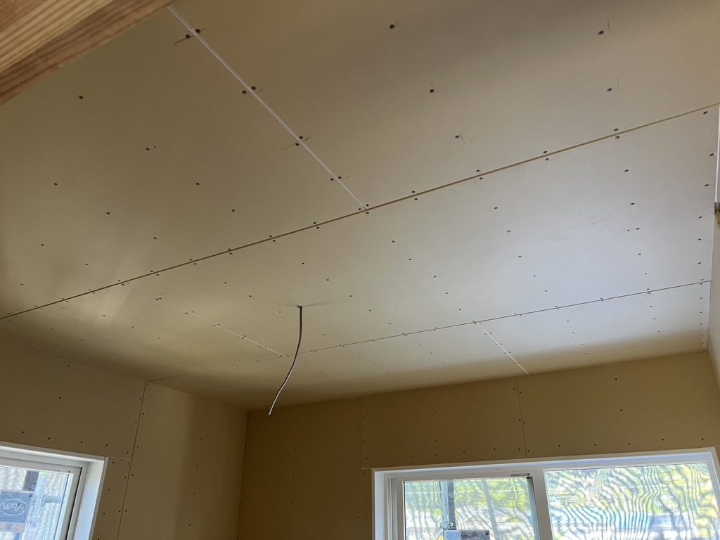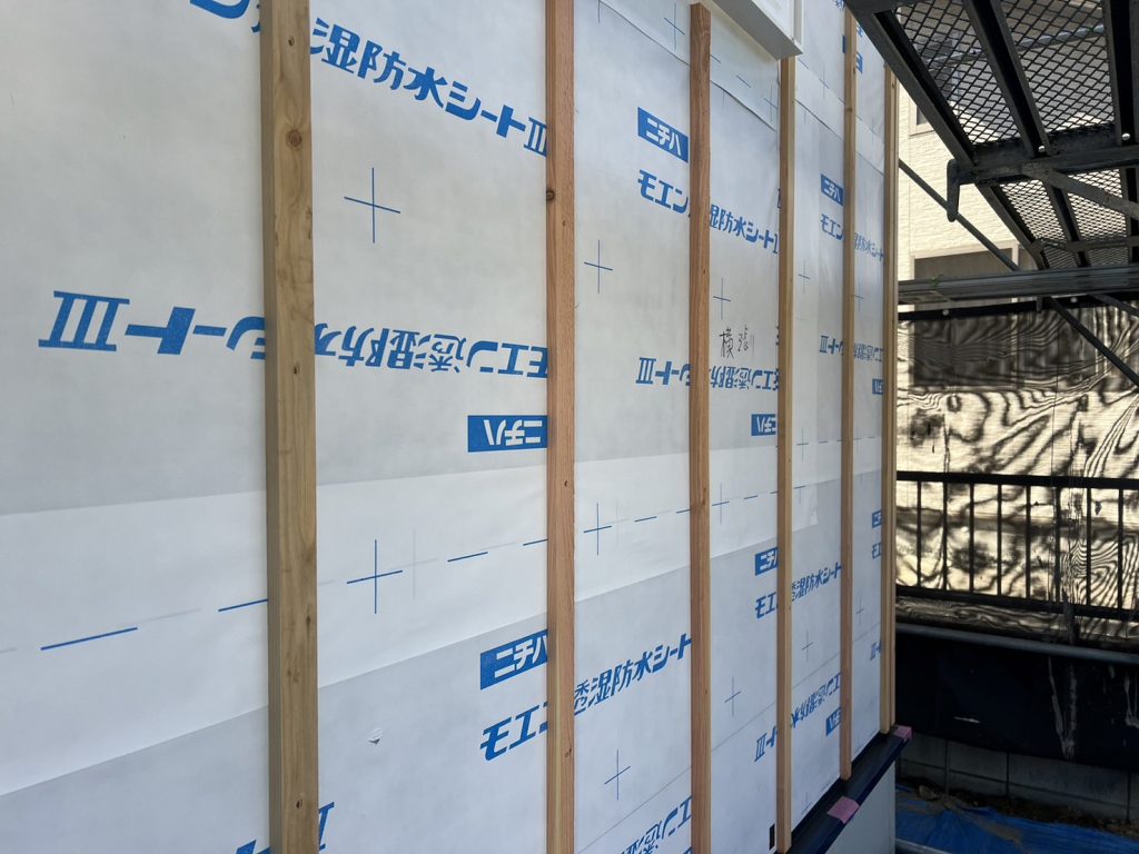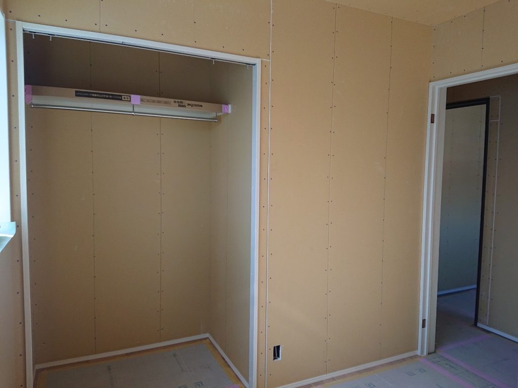 外壁工事と大工工事が終わり、クロス工事中です。
