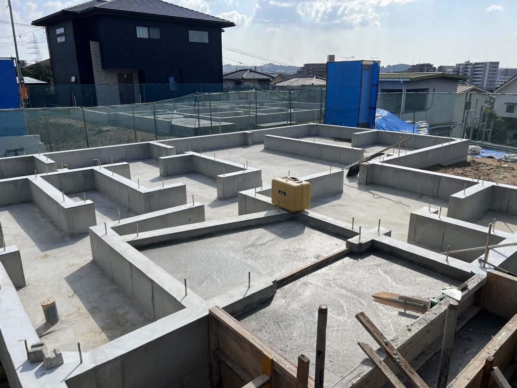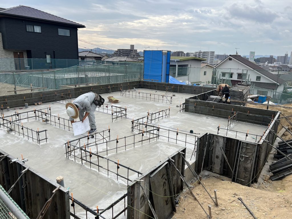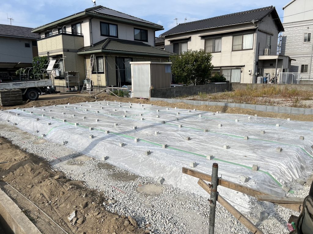 地盤改良工事が終わり、基礎工事中です。