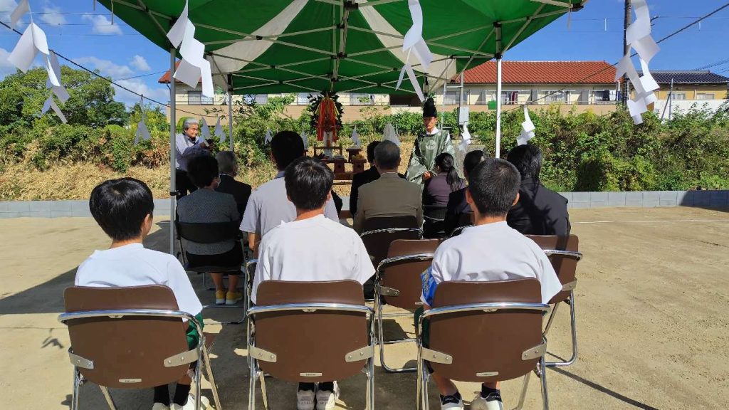 今回は地鎮祭の日程とも重なったので、設営のお手伝いだけでなく、実際に参加してもらいました。