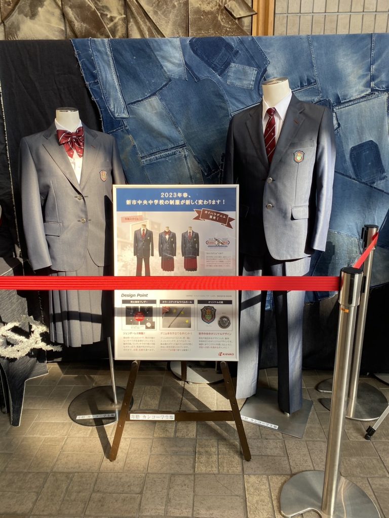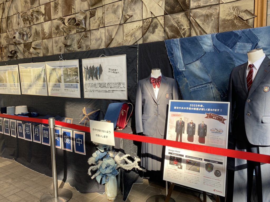 制服だけじゃなくて、ランドセルカバーなど、いろんなデニム製品が展示されていました。