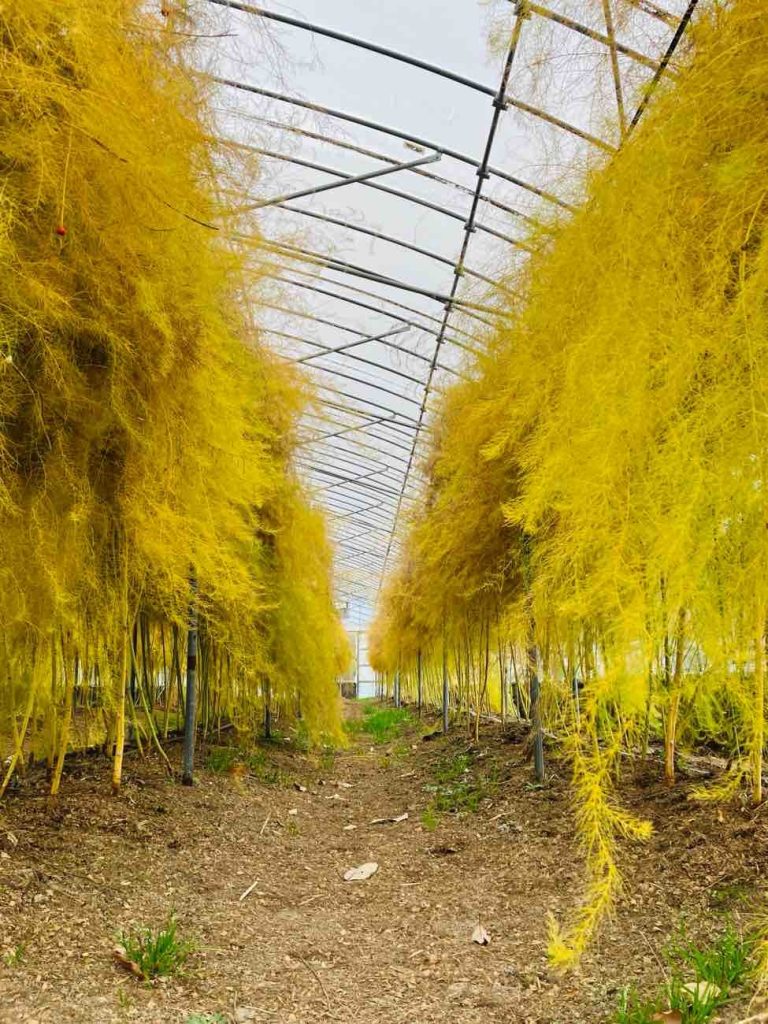 数ヶ月前までは青々としていた親茎が役目を終え、ビニールハウス内がすっかり黄色くなりました。