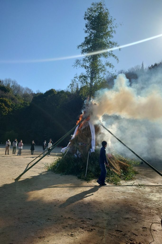 火が燃え盛る中、お神酒やぜんざい、焼き芋などが配られて、寒さを忘れるほど温かい雰囲気でした。