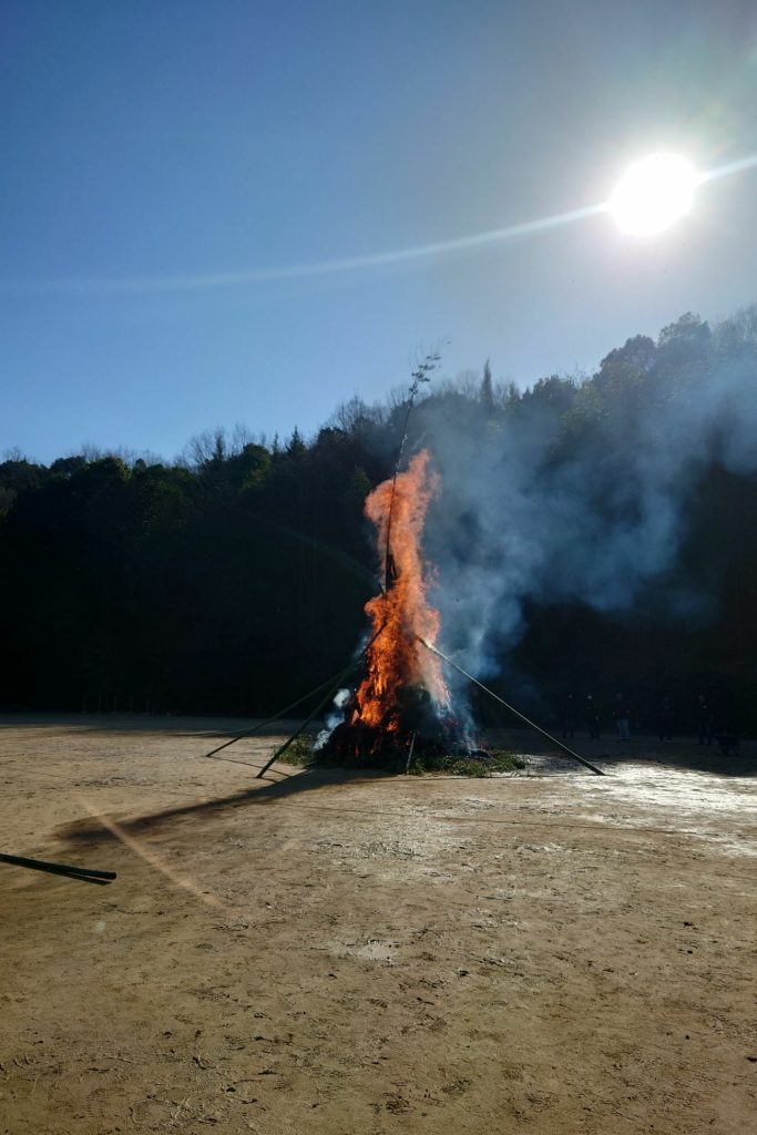 とんどは小学校6年生が点火するのが恒例で、今年も元気に火をつけてくれました。