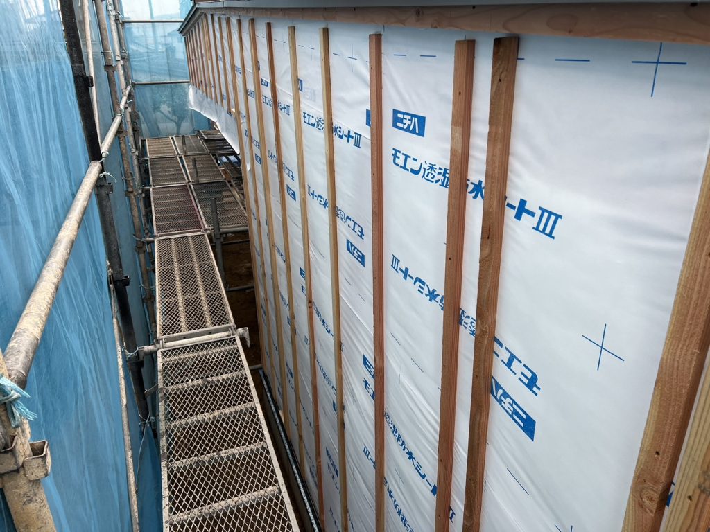 外壁工事と内部造作中です。