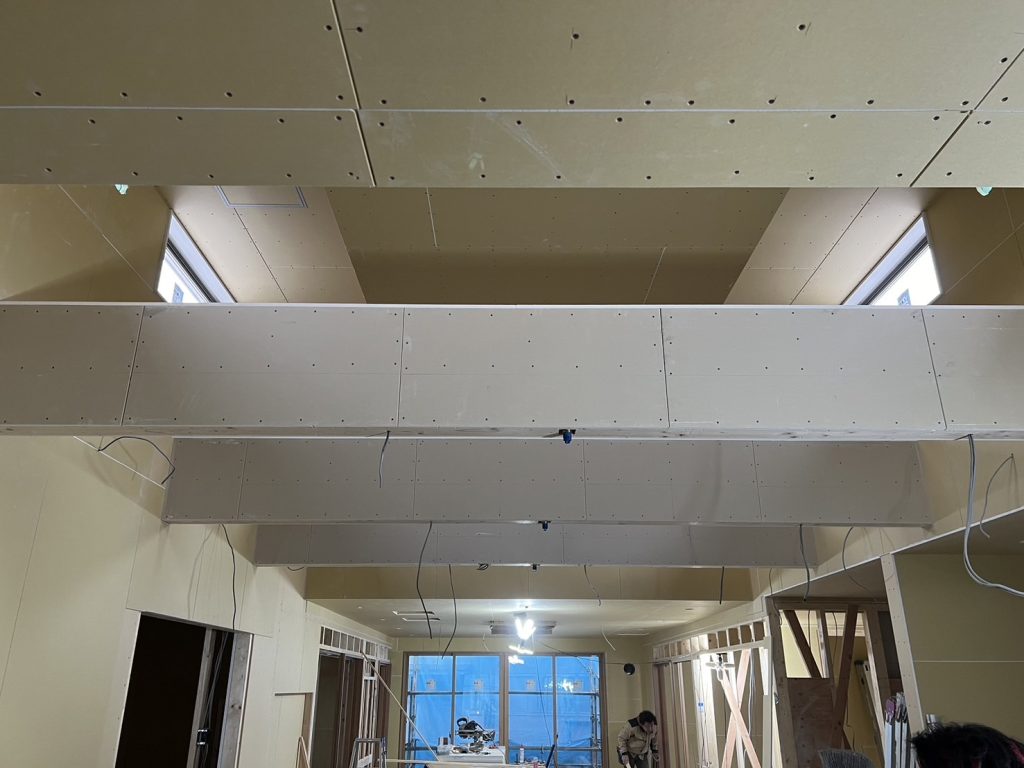 外壁工事が終わり、内部造作中です。