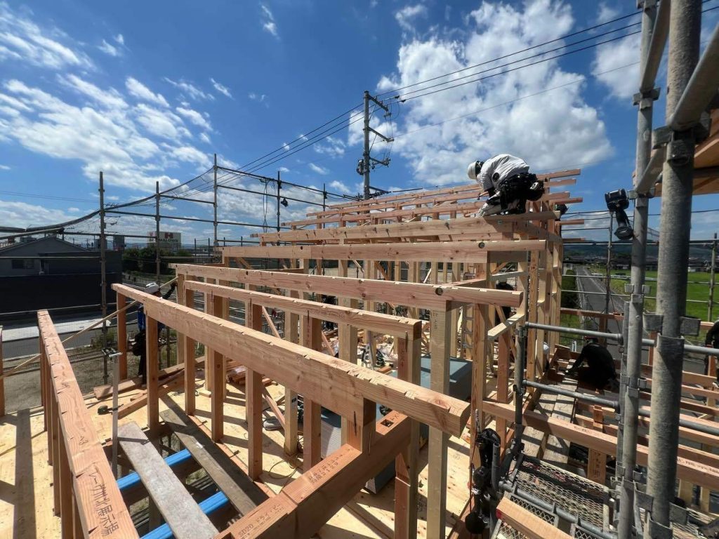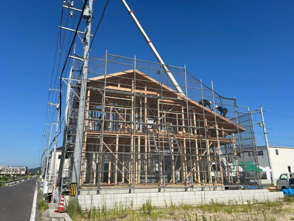 職場復帰1日目は神辺町に展示場の上棟でした!