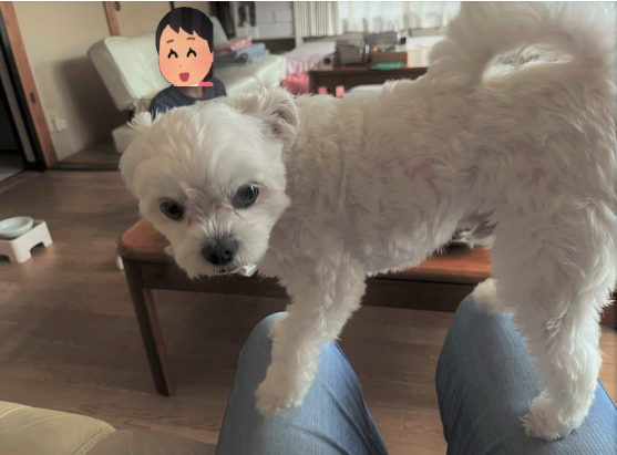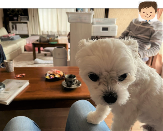 1年半前に工事をしたときにはまだ子犬だったワンちゃんが、私の事を覚えていて膝の上に乗ってくれました。
