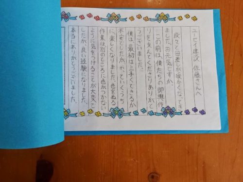 先日ブログで紹介した卒業制作のお手伝いですが、その後校長先生が自ら、6年生からのお礼をもってきてくださいました!