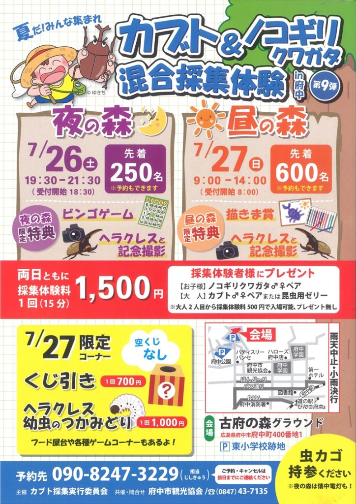 今年もカブトムシ&ノコギリクワガタ 混合採集体験in府中 が開催されます。