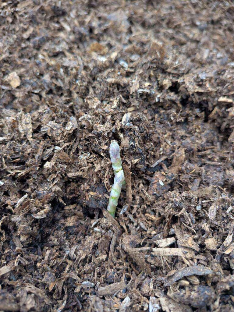 作業してると、もうアスパラが芽を出していました!