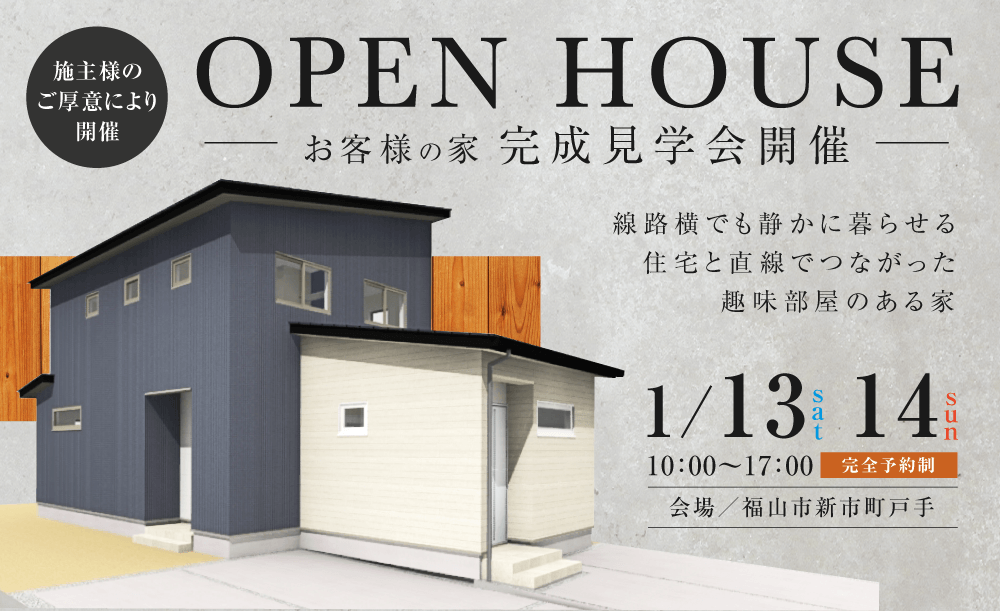 【1/13(土)・14(日)】お客様の家完成見学会【福山市新市町戸手】