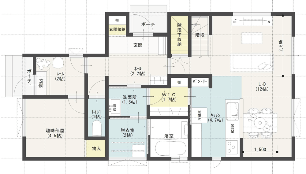 - 室内干しができる2畳のランドリールーム