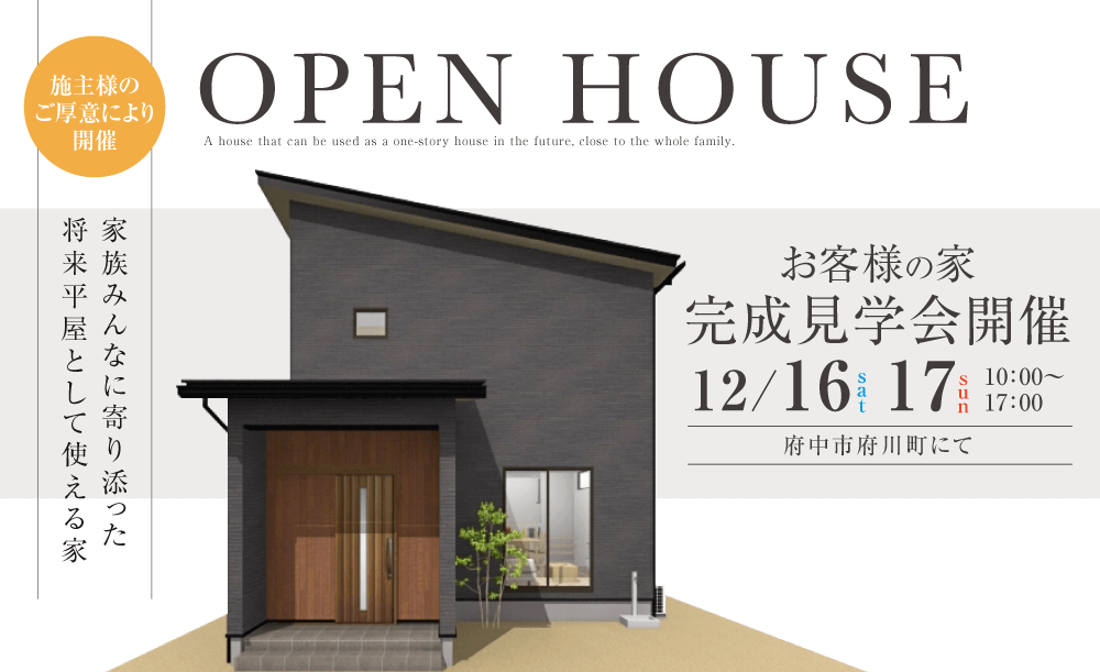 【12/16(土)・17(日)】お客様の家完成見学会【府中市府川町】