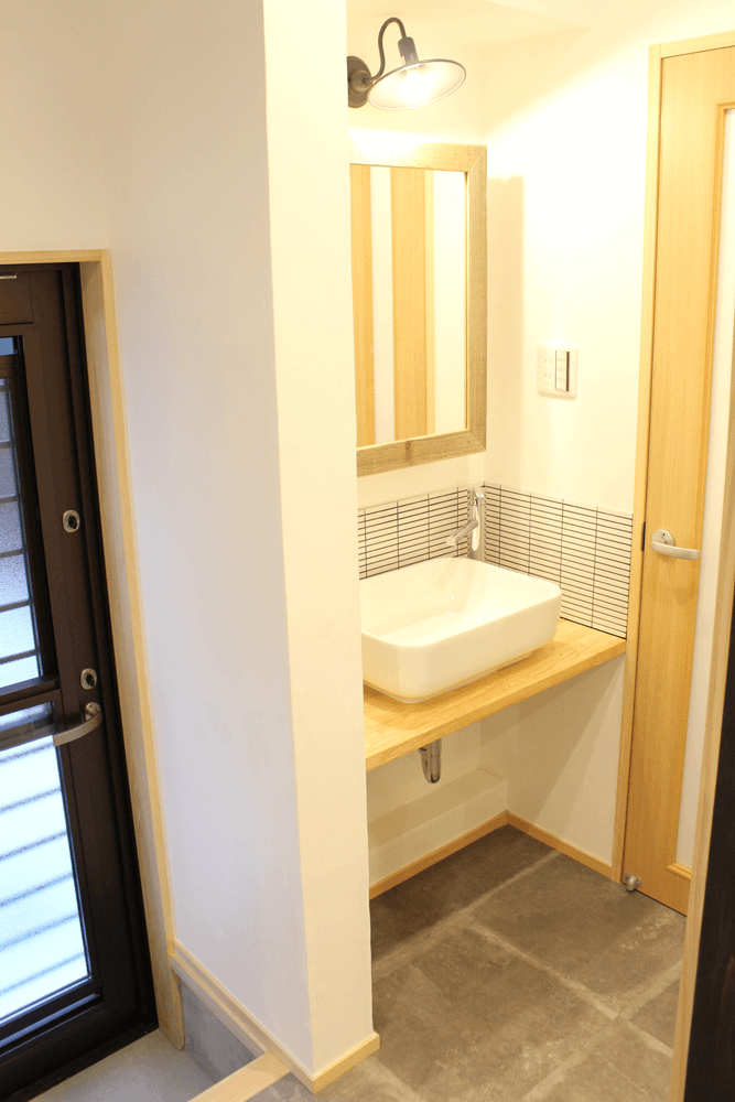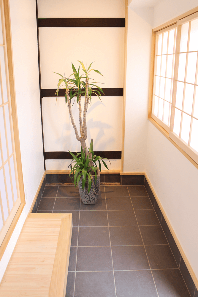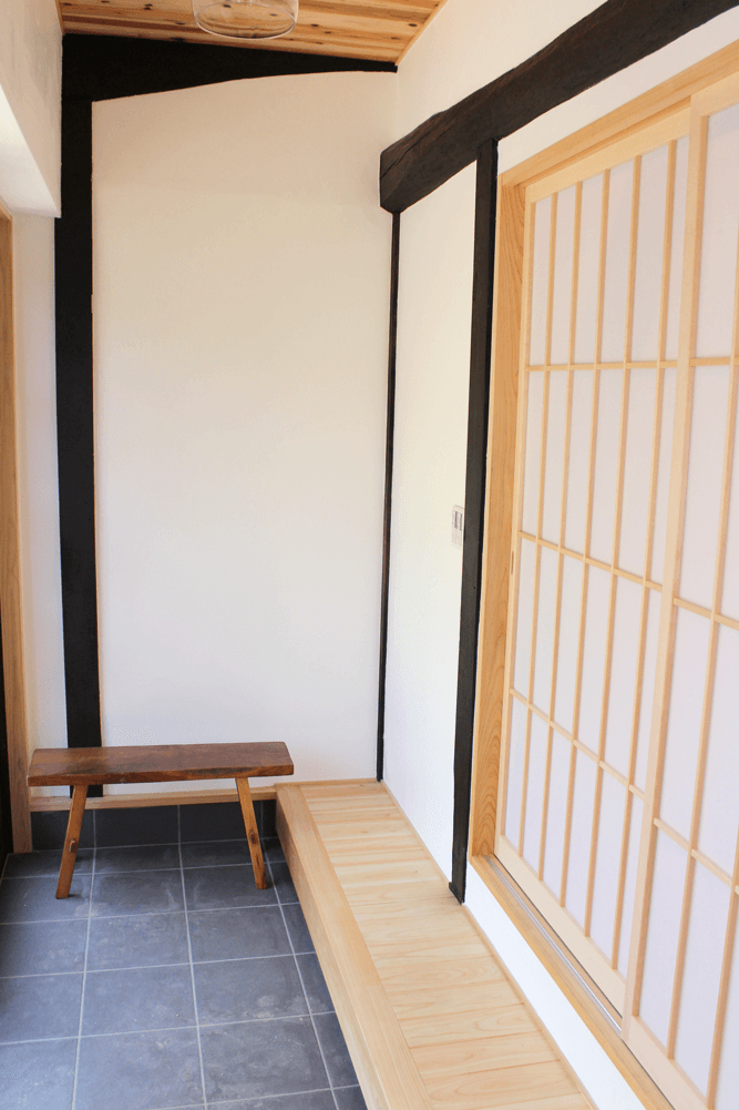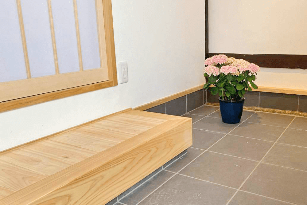 タイルはグレーに統一し、上がり框も綺麗にすることで、印象も明るくなりました!